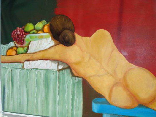 Bild Nr. 9 Model und Stilleben Oel auf Leinwand Grösse 80 x 100 Fr. 3000.--